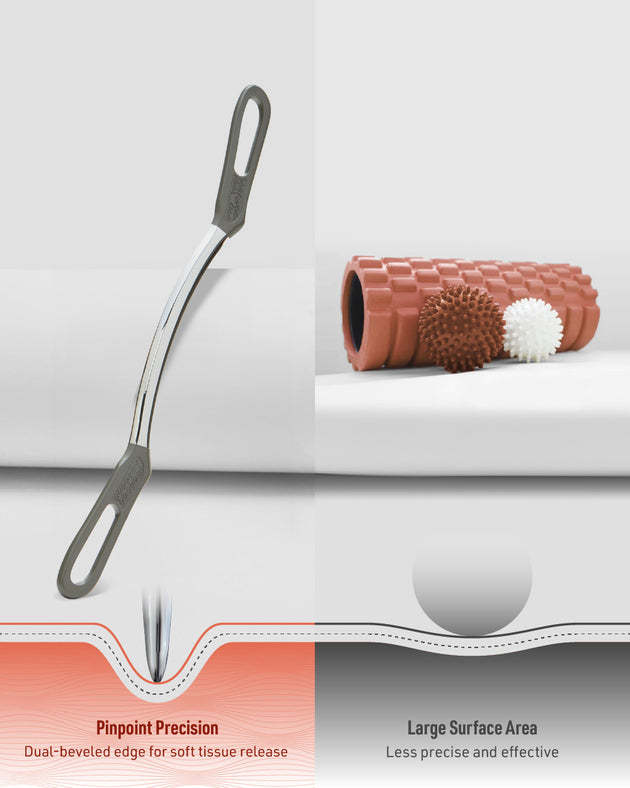 Longest scraping tool. At 19” (48cm), you can treat bigger muscles in less time.