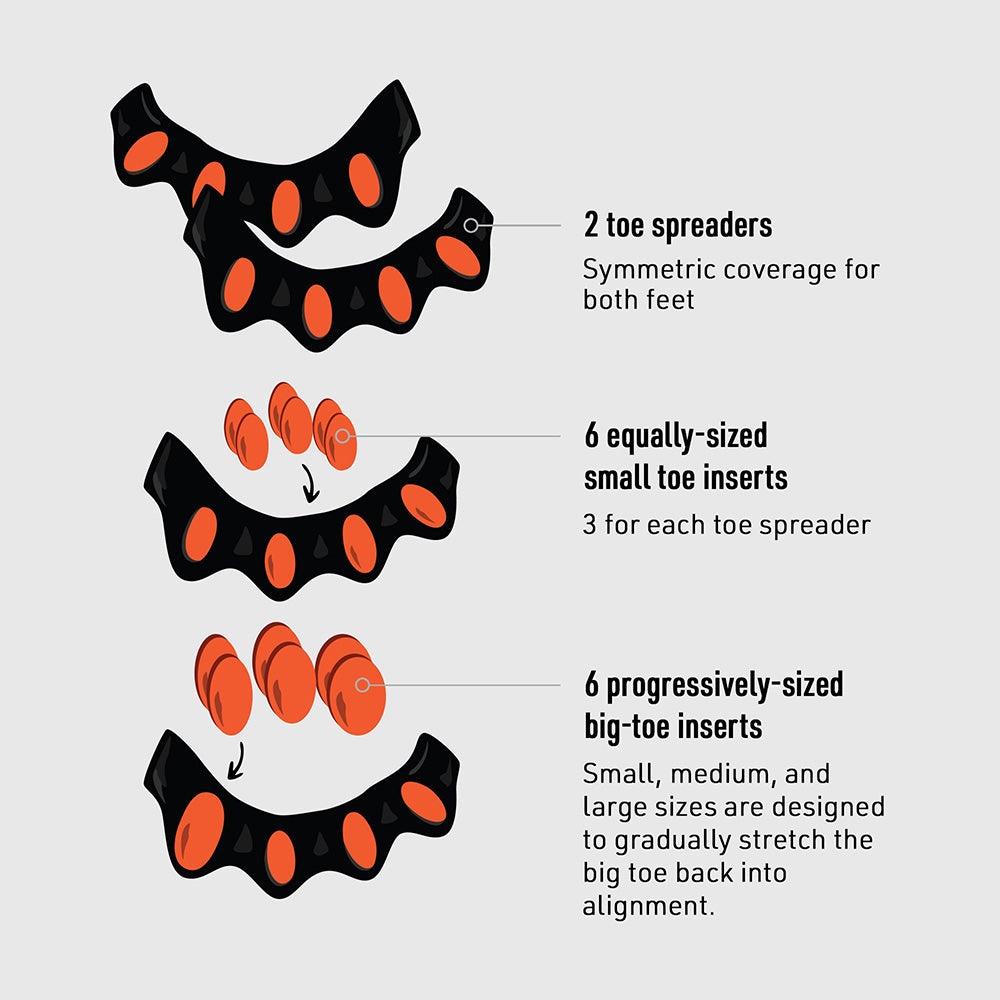 - The Toe Spreaders to correct alignment and activate stabilizing muscles