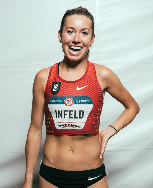 Emily Infeld runs the 5K and 10K for the Nike Boweman Track Club and placed 11th in the 2016 Rio Olympics in the 10K. She grew up in University Heights, Ohio and went to Beaumont High School where she was an 8-time Individual State Champion and still holds their high school record in the 1600m (4:41). She was the U.S. High School National Champion in the 8-mile in 2008.