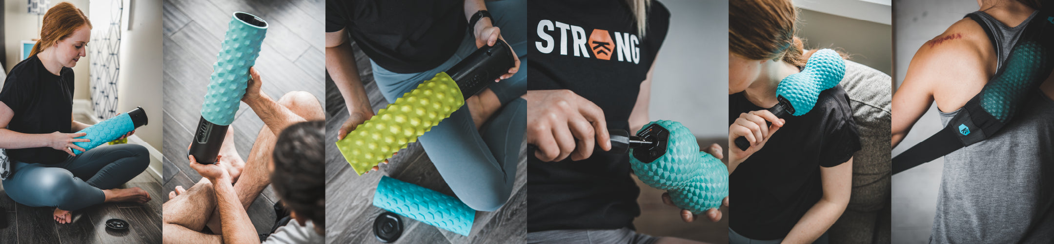 The next evolution in muscle recovery technology. Combining powerful vibration, deep heat therapy, mobile app control, and dual attachable handles all in a compact and portable package.