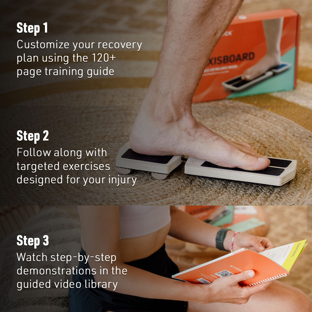 Your AxisBoard includes a printed, physical therapist-approved guide with targeted routines for over 10 of the most common foot and ankle injuries - so you’re never left wondering what to do.