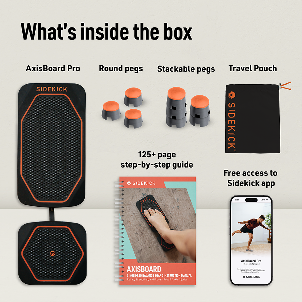 Every AxisBoard Pro includes access to the Sidekick App and a PT-developed 125+ page guide with routines for the most common foot and ankle injuries.