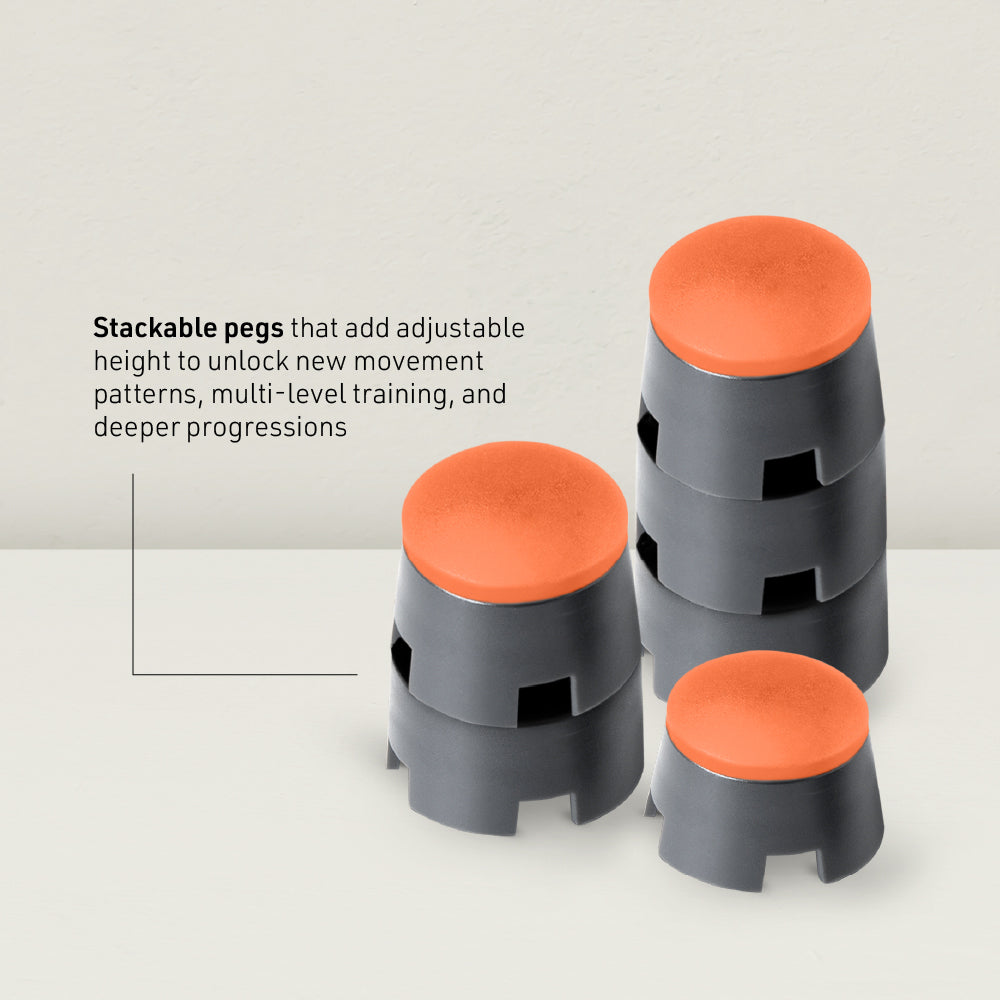 - Stackable pegs let you add height and get deeper strength & mobility setups